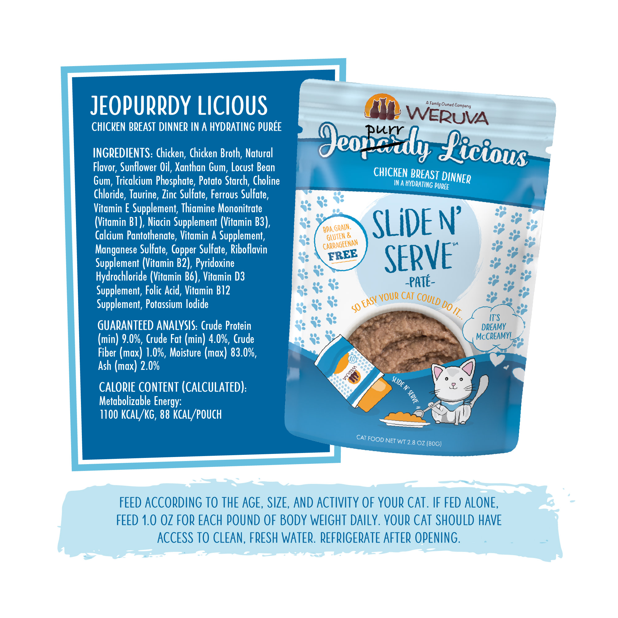 Weruva Pate Jeopurrdy Licious Chicken Breast Dinner in a Hydrating Puree Wet Cat Food, 2.8 oz., Case of 12